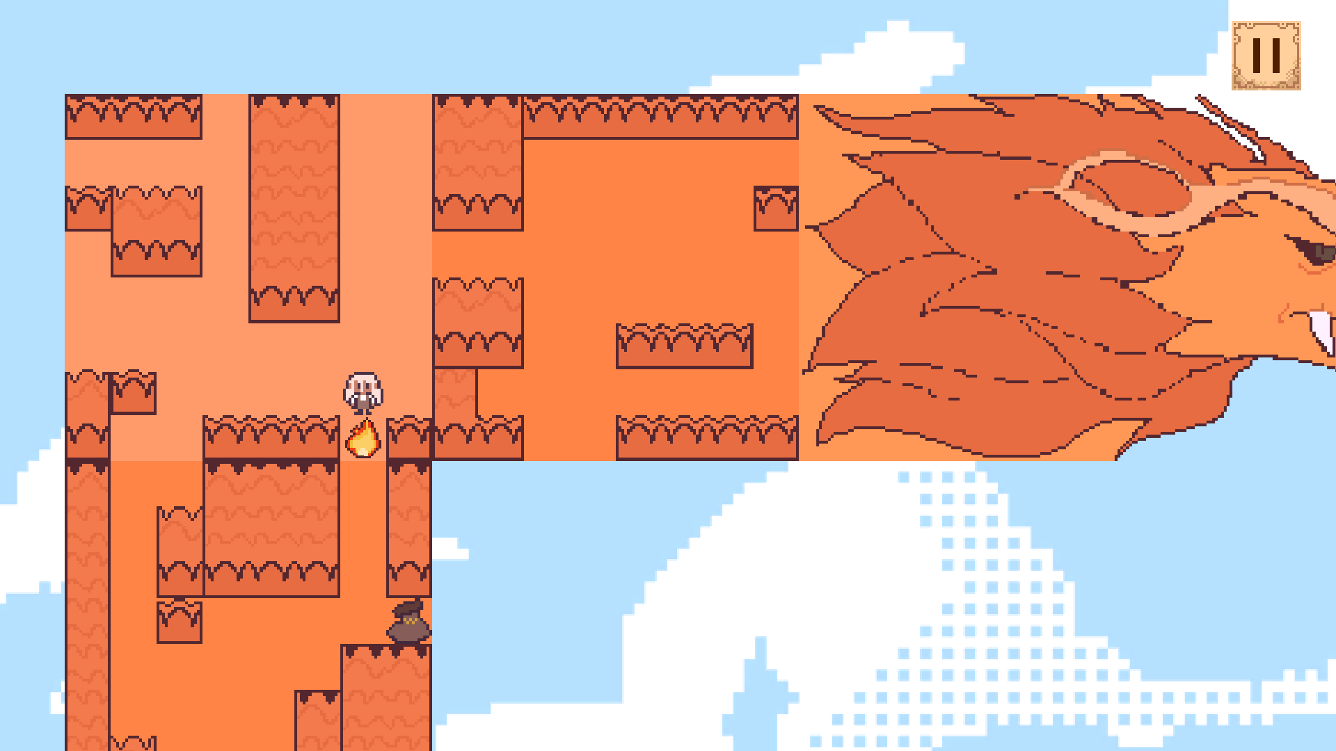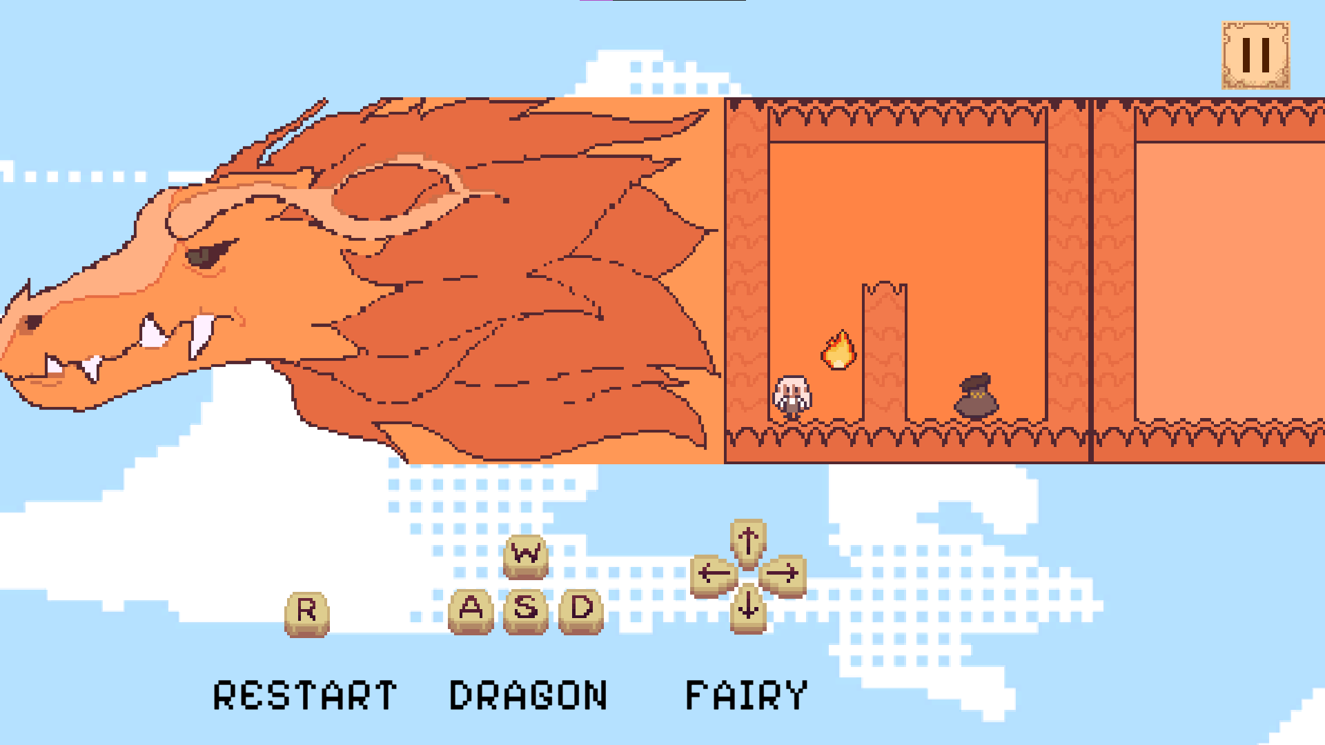 Управляй драконом и феей отдельно, двигай обоих, чтобы решить пазл и довести жаропух до выхода!